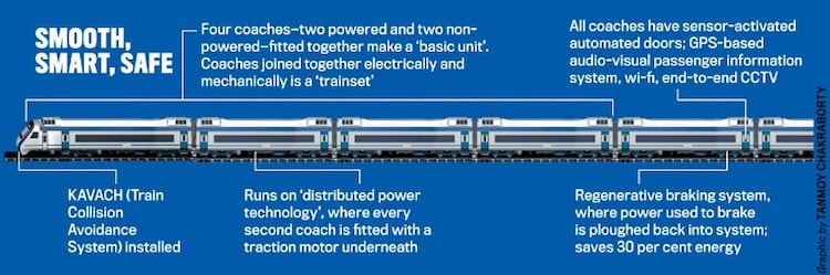 For shorter, intercity commutes, less than 500 km, there will be eight-coach Vande Metros, to be launched by November-December this year. “The metro versions will have all the specs and features of existing Vande Bharats. A prototype of the sleeper version will be ready by early next year,” says B.G. Mallya, general manager at the Integral Coach Factory (ICF), Chennai.